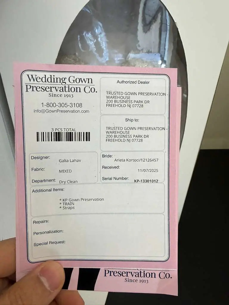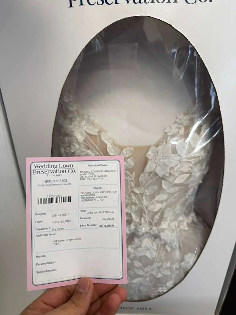 No worries, though! We have multiple sizes in preservation boxes to accommodate various dress styles. With our 100 years of expertise, we ensure your gown is carefully stored in the appropriate box to maintain its quality and shape for years to come. Additionally, our team assesses each dress individually to select the best fit for preservation.