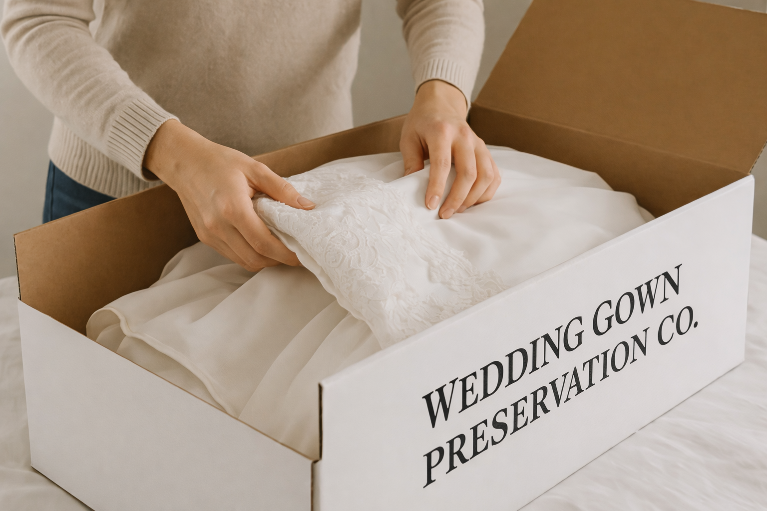 Ship your insured gown in a crushproof, water-resistant box using the prepaid UPS label provided.